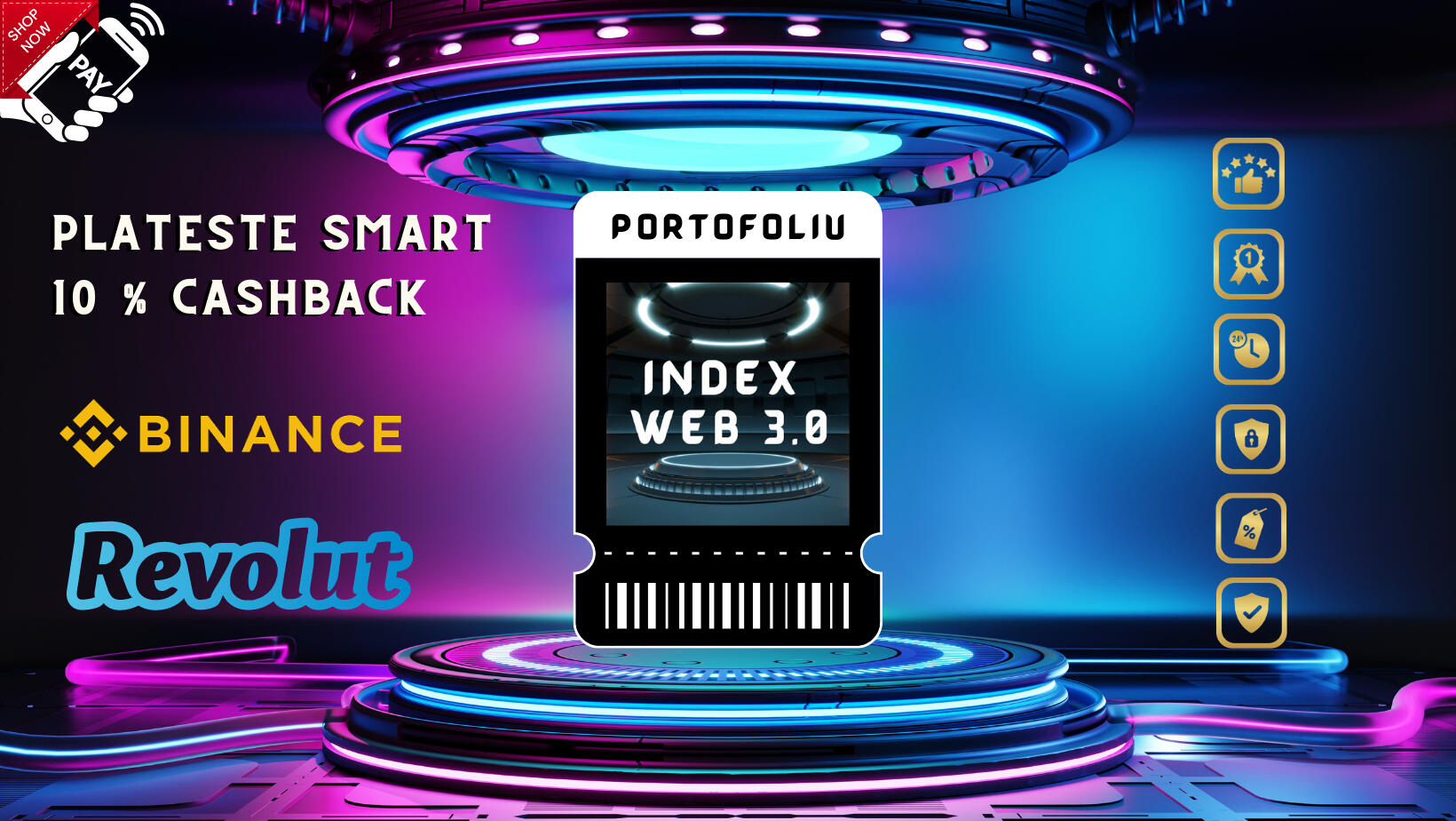 Acces direct la portofoliul INDEX WEB 3.0 ce va ofera o lista diversificata de cel putin 10 criptomonede si tokeni pentru a le integra in propriul dumneavoastra portofoliu de investitii oferindu-va statistici la zi cu diferenta de calcul din momentul investitiei realizate.